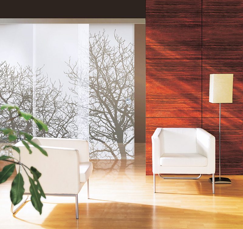 Fólie na skle vytvářejí podobný efekt jako pískování nebo ho mohou tónovat do různých barev. Levnější, ale i méně odolné jsou adhezivní fólie, které drží na skle pomocí statické elektřiny. Seženete je v hobbymarketech v mnoha barvách i dekorech a stojí okolo 170 Kč/m2. Vysoce kvalitní lepené fólie instalují specializované fi rmy a stojí zhruba 650 Kč/m2. Neodloupnou se ani při vysoké zátěži, nepropouštějí UV záření, a navíc fungují jako bezpečnostní prvek – pokud dojde k rozbití skla, nevysype se, ale zůstane díky fólii pohromadě.