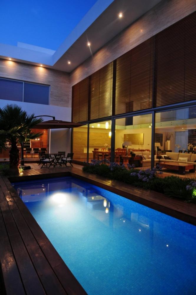 Zabránit zvědavým pohledům sousedů i přílišnému působení slunečních paprsků lze elegantně tím, že zastíníte bazén lamelovým plotem. Ten se vyrábí z tenkých dřevěných prken, a to buď ve vodorovném, svislém, nebo mřížovitém provedení. Poslední z těchto tří je ideální pro růst popínavých rostlin.