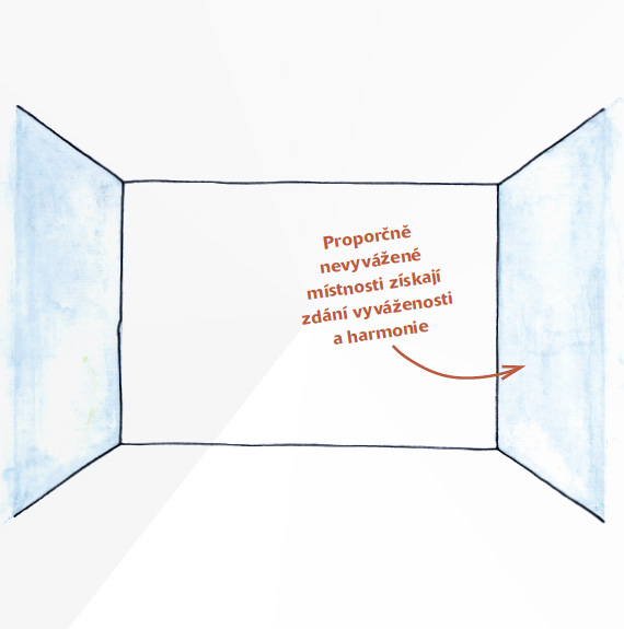 - v hodně širokém prostoru se pocitově ztrácíme, díky tmavší barvě se odstup bočních stěn zmenší