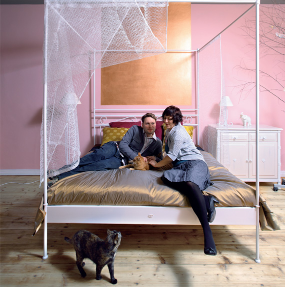 Nebyl to úplně záměr, ale časem se ukázalo, že s týmem Marianne Bydlení si lehce vystačíme i při focení romantických dekor story nebo módy. Grafičku Madlenku jsme měli kdysi, ještě jako cizí, i na obálce a bývalý produkční Jirka se taky brzy vypracoval na přední stránky. Když při focení módy ve stylu Zpívání v dešti učil najatého modela tančit, zjistili jsme, že příště ušetříme, když to odtančí sám. Na pózování k zamilovanému dekoru už jsme nikoho nehledali – Jirka s Madlenkou si to fakt užili! (viz obr. 6)