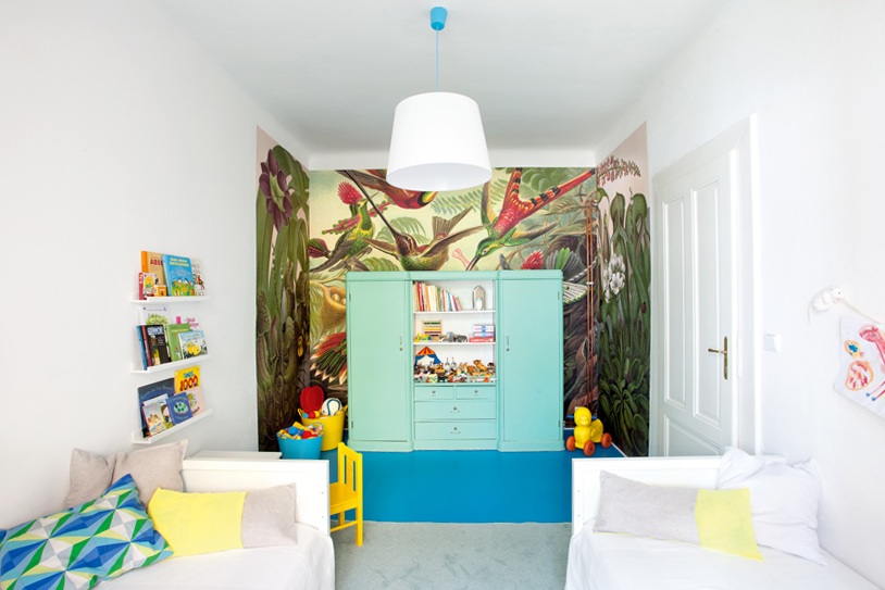 Souběžně s tím Radka hledala způsob, jak by mohla pokojík zařídit tak, aby tu mohly přespávat mimopražské babičky, které do té doby spaly na matracích. S přítelem tedy pořídili dvě postele – jednu pro syna, druhou pro návštěvu. Výhodou těchto postelí je, že se dají složit jako palanda, takže až bude Otík chodit do školy, bude tu dost místa i na psací stůl. Aby pokoj nepůsobil studeně, jednu stěnu polepili tapetou. „Kdysi tu byl kuchyňský kout, na nějž předchozí majitel bytu použil voskový nátěr, který vůbec nešel přetřít. Tapeta byla tedy jediným řešením. „V jednom starém atlasu zvířat jsem našla krásnou ilustraci ptáčků, kterou jsme pak nechali vytisknout na tapetový papír. Myslím, že sem skvěle zapadla, a Otíkovi se moc líbí,“ pochvaluje si Radka.