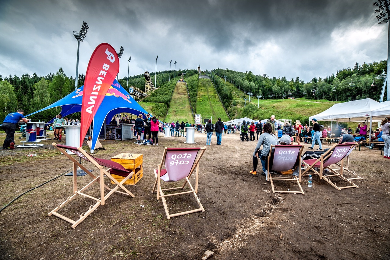 Když si moje rodina i mí známí klepali na čelo, proč jdu dobrovolně na takovou šílenost, věděla jsem, že to ten, kdo to nezkusí, nemůže pochopit - je to adrenalin. Já už trochu věděla, do čeho jdu - před dvěma lety jsem v rámci novinářské štafety běžela tu nejprudší část. A bylo to šílené. Nebyla jsem moc vytrénovaná a tak jsem měla pocit, že mi snad uhoří plíce. Jenže dostat se po svých úplně nahoru, to jsem musela zkusit. Do Harrachova jsme přijeli už v pátek a tak jsme se šli podívat na večerní závod - Noční sprint s Benzina, kdy se běželo jen do půlky, ale ve tmě. Když stojíte pod můstkem, připadáte si tak malí! To jako mám zítra vyběhnout? - říkala jsem si pro sebe. Měla jsem k tomuto gigantu respekt, zvlášť, když bylo po dešti a tráva a bahno běžcům podkluzovalo.