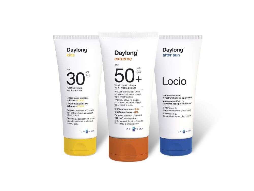 Produkty Daylong spolehlivě ochrání před nežádoucími vlivy sluníčka celou rodinu. Produkty najdete ve třech barevných řadách – oranžovou pro sluneční ochranu dospělých, žlutou pro naše nejmenší už od narození a modrou řadu pro péči o pokožku po opalování.