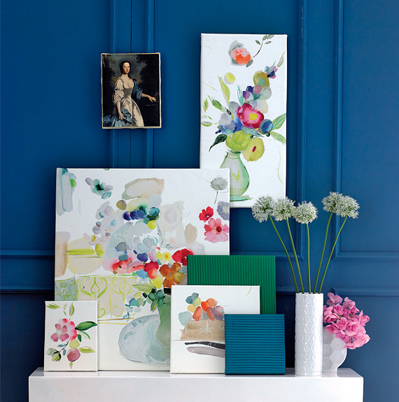 Zbytky látky, kterou máte na závěsech nebo polštářích, použijte třeba k výrobě obrazů. (viz úvodní foto)
