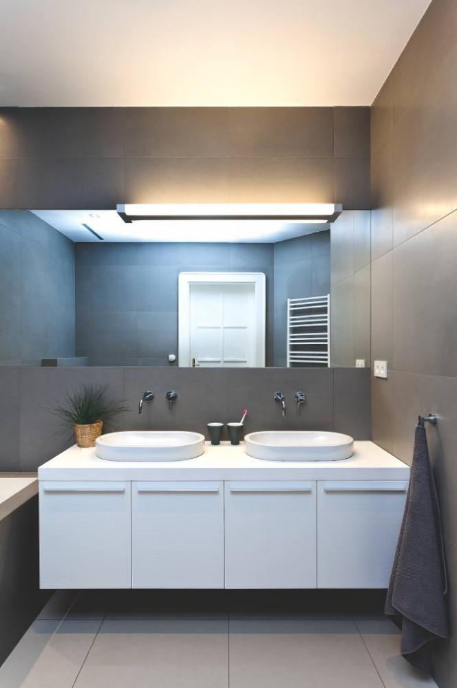 Designér Tomáš Varga ke své první bytové zakázce přišel přes koupelnu. Od ní se pak odvíjelo výtvarné řešení celého bytu, který ctí stejné principy. Už předem bylo rozhodnuto, že se v rámci rekonstrukce propojí původní koupelna, která existovala pouze v hrubé stavbě, se sousední komorou. Na jejím místě se ocitl asymetrický sprchový kout. Tomáš eliminoval všechny nadbytečné detaily i barvy a celé místnosti vtisknul ucelený minimalistický charakter. S hi-tech vybavením, které kompletně dodalo koupelnové studio Il bagno, kontrastují původní repasované kazetové dveře s profilovanými zárubněmi. Koupelna je od podlahy až ke sníženému stropu, nad kterým je zabudována vzduchotechnika, vydlážděna podlahovou krytinou Keope ve dvou tónech. Tomáš Varga do koupelny umístil veliké zrcadlo, které se táhne přes celou stěnu nad umyvadly a vanou. Opticky znásobuje prostor a umocňuje kontrastní hru ostrých a zaoblených forem, které se v koupelně potkávají. Podstatným prvkem je osvětlení od firmy Delta Light. Kromě nástěnného svítidla Lay in nad zrcadlem je ve stropě zasazeno devět světelných spotů. „Kdyby takhle minimalistické řešení nebylo kvalitně osvíceno, prostor by působil až příliš stroze a neútulně. Potkávají se zde dva různé druhy osvětlení, jejichž intenzitu je možné jednoduše regulovat a vzájemně mísit,“ vysvětluje designér.