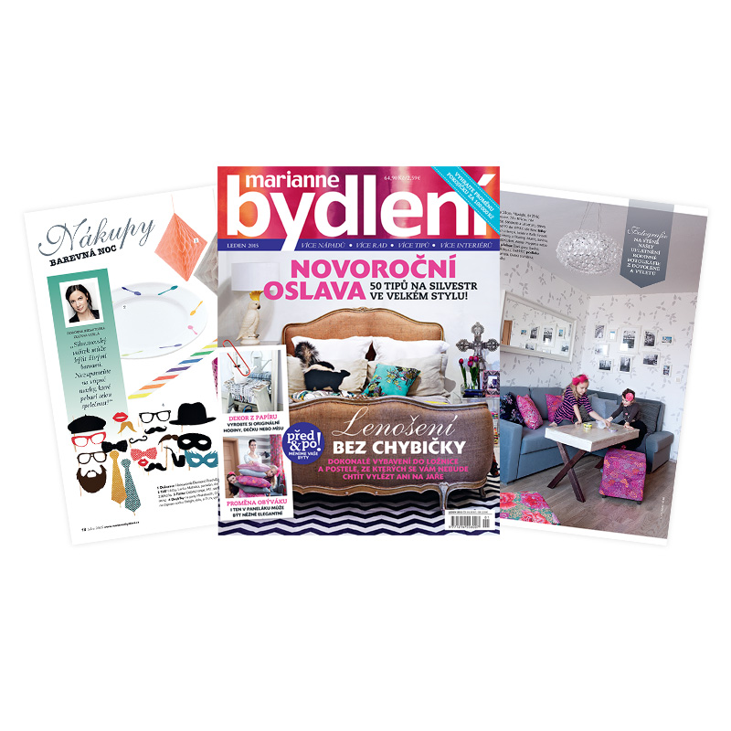 Na pultech novinových stánků od teď hledejte pestrou červenofialovou obálku s krásnou ložnicí, ve které bydlí papoušek a tchoř. Jakmile otočíte titulní stránku, dostane se vám spoustu tipů na nákupy do vašeho slavnostně naladěného domova. Jak by se vám líbilo třeba nové nádobí s krásným malovaným dekorem nebo dózičky z broušeného barevného skla? Inspiraci najdou také všichni ti, kteří chtějí pro přátele nachystat nezapomenutelnou silvestrovskou noc.