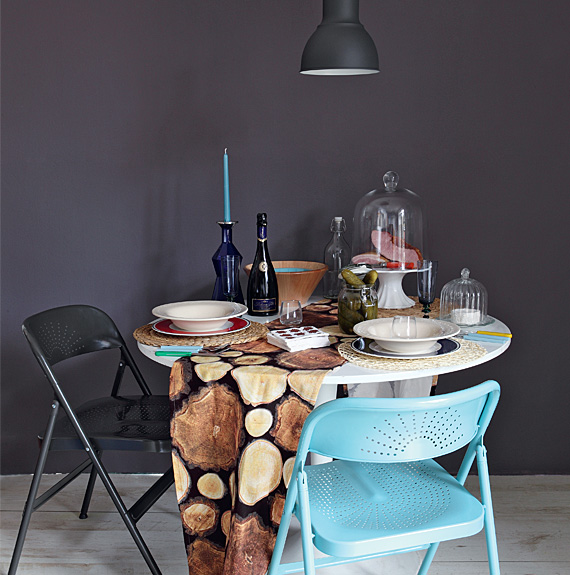 Důležité je, abyste se při společné hostině cítili pohodlně a aby vám všechno, co se na stole objeví, opravdu chutnalo. Naše pánské osazenstvo se shodlo, že není nad poctivý kus masa, čerstvý chléb a dobrý sýr. Pokud vám tento styl rustikálního občerstvení také vyhovuje, podávejte je na stylovém nádobí. Používejte masivní mísy, velké talíře, ostré nože, slaměné prostírání. Petr v Ikea objevil ubrus s dekorem dřevěných špalků, který k pánskému stylu slavnostní tabule dobře sedí a podtrhuje jeho specifický styl.