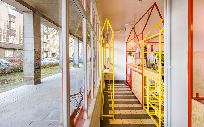 Stesk po zmizelé ‚zapékance‘ přinutil polské architekty k navržení moderního interiéru, který by typické pochoutce vrátil čest a slávu.