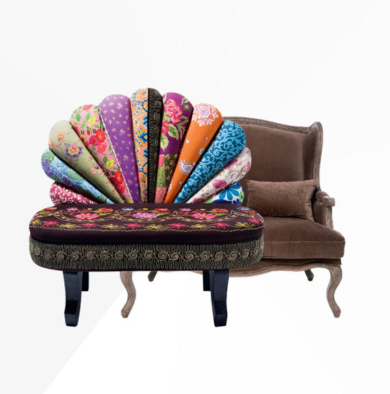 - Peacock, Kare, dřevo a bavlněný potah, 100 × 50 × 95 cm, www.kare-design.com, 21 900 Kč