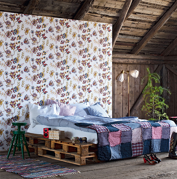 - Pracujte s tapetou, chcete-li rychle docílit velkého efektu. Zkuste si třeba vytapetovat stěnu, z dřevěných palet sestavte lůžko, a nová ložnice je na světě!