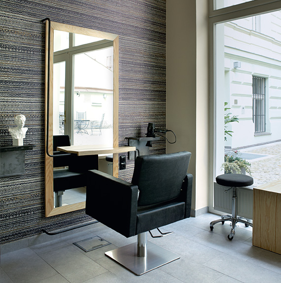 Již při vstupu do společné části salonů Werner Hair a Nailed by R na návštěvníka dýchne příjemná rodinná atmosféra v severském duchu. Regina Martinkovičová o interiéru, který navrhl architekt Boris Bačuvčík ve spolupráci s Merry Go Rando, říká: „Milujeme sever, přírodní materiály a tradiční řemeslo.“ Interiér v zemitých tónech tak oživuje jen několik detailů, jako je staré rádio či plechové tabule na psaní nápadů. „Přílišná kreativita totiž škodí, jak v práci kadeřníka, tak v interiéru,“ dodává Antonín W. Franěk. Podobně jako na rodinné návštěvě, i tady v salonu dostanete malé občerstvení a můžete si v klidu vychutnávat krásu paláce, jehož součástí je i kavárna a estetická klinika. (foto 1–3)