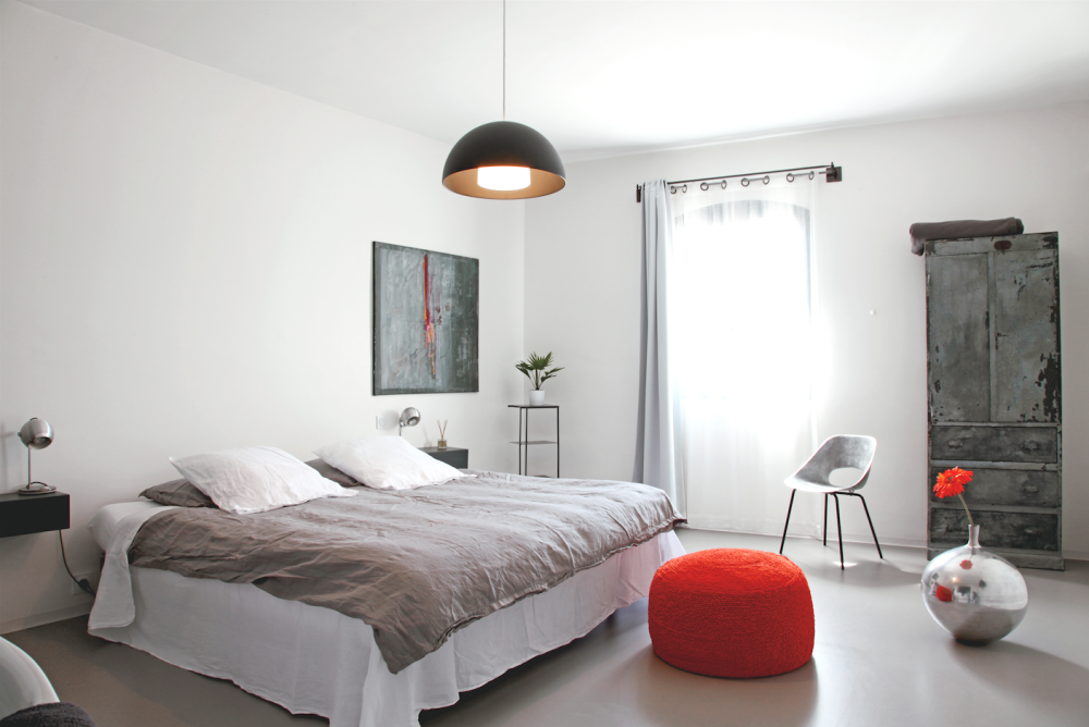 Jakmile byla stavba z větší části dokončena, švýcarský pár se hned zaměřil na hledání vhodného zařízení. Jejich vizí byl mix moderního nábytku v kontrastu s průmyslovým mobiliářem a vybavením s vintage vzhledem.Většinu toho nalezli na starožitných trzích v okolí, v Carpentras, L’Isle-sur-la-Sorgue a v Avignonu. Všechny pokoje jsou tak zařízeny v kombinovaném, ale jednoduchém stylu a některé nabízejí skutečné vychytávky, jako třeba pokoj Sous les étoiles (Pod hvězdami), ve kterém je postel připevněna na speciálním kolejnicovém systému, díky němuž ji lze vysunout z pokoje na terasu a usínat s hvězdnou oblohou nad hlavou.