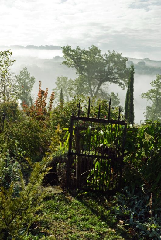 Nejvíce ji inspiruje populární britská zahradnice Penelope Hobhouse, která je proslulá právě svými kompozicemi z růží. Gabriella a Gerardo založili smíšené trvalkové záhony a vytvořili přírodní jezírko. Srdcem zahrady však zůstávají aromatické keře a růže. „Pro nás je nejdůležitější, že si zahrada udržuje formální charakter a harmonii, která dokonale zapadá do kontextu umbrijské krajiny,“ vysvětluje Gerardo. Velká část krajiny je porostlá olivovými háji. Také v zahradě Lizzaových mají olivovníky své místo a Gabriellinou chloubou jsou i záhony zeleniny. „Začali jsme s italskou tradicí a postupně jsme objevili romantiku anglických zahrad,“ říká Gabriella. „Podařilo se nám propojit eleganci a lehkost krajiny, jejíž dominantní cypřiše ve vás vyvolávají už z dálky úctu, a kde všechno roste téměř samozřejmě, s nostalgií a zádumčivostí zahrad anglických. Tady v Monticellu se obojí dokonale spojilo. Na podzim je celá zahrada ztišená a působí uklidňujícím dojmem. Ve vzduchu je cítit čas – na podzim mám dojem, jako bych slyšela, jak se zahrada připravuje na zimní odpočinek.“