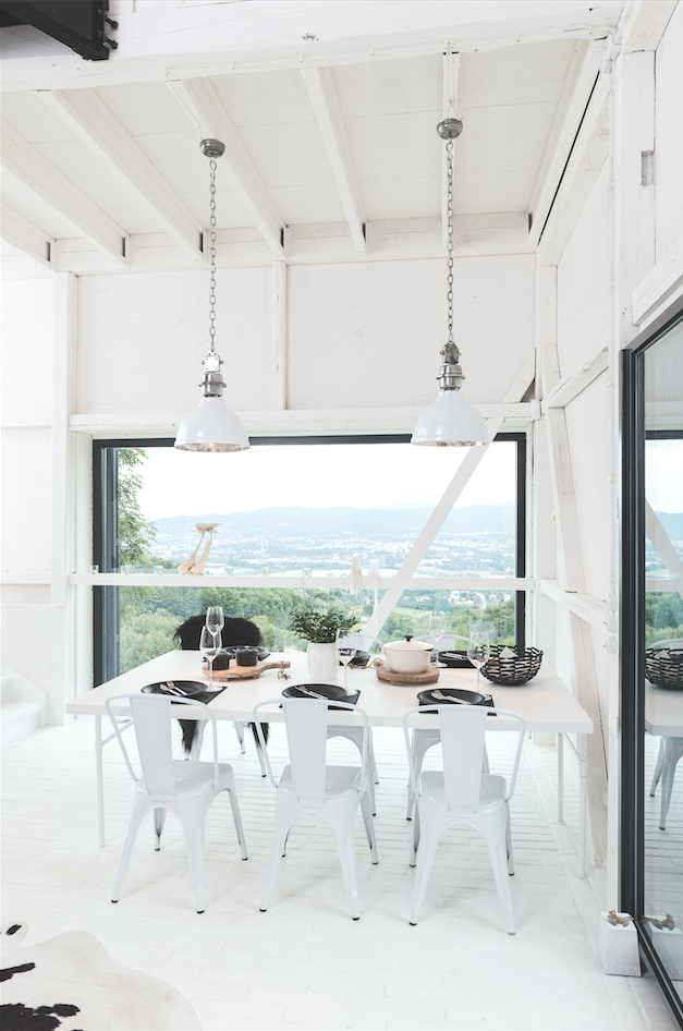Celá rekonstrukce je koncipovaná tak, aby byla ohleduplná k okolí i budově samotné. Konstrukce fasády opakuje stejný formát prken a latí, jaké ji kryly původně, a k atmosféře přispívá i odhalená vnitřní konstrukce. „Právě v tom byla pro nás užitečná inspirace z www.heritagebarns.com,“ popisuje Radka Valová. „Jejich rekonstrukce nás přivedly k zachování trámů i přes nově vybouraná okna nebo k jejich využití při stavbě vnitřních polic v kuchyni a pracovně.“ Podlahu chtěli architekti nejprve pokrýt půdovkami. „Místo nich jsme ale našli cihelnou dlažbu, vlastně nařezané cihly stejného rozměru, z jakých je zeď. Bíle natřené vypadají dohromady skvěle.“