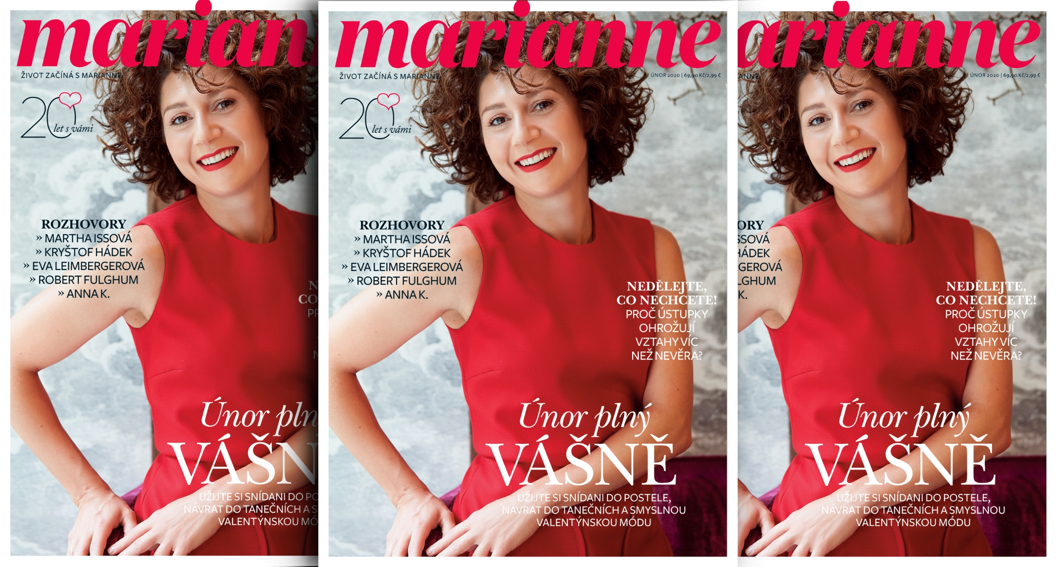 Další skvělý rozhovor je s herečkou Marthou Issovou a také máme radost z rozhovoru s hercem Kryštofem Hádkem. Na stránkách nového čísla vám přinášíme i reportáž z posledního setkání s našimi čtenářkami. Koktejl s Marianne se tentokrát odehrál v krásném gotickém prostoru Sněmovní 7. Jeho majitelkou je Kateřina Bursíková Jacques, kterou nejspíš znáte z politiky, dnes je u ní ale vše jinak. Jak? To vám prozradí v rozhovoru na straně 50.