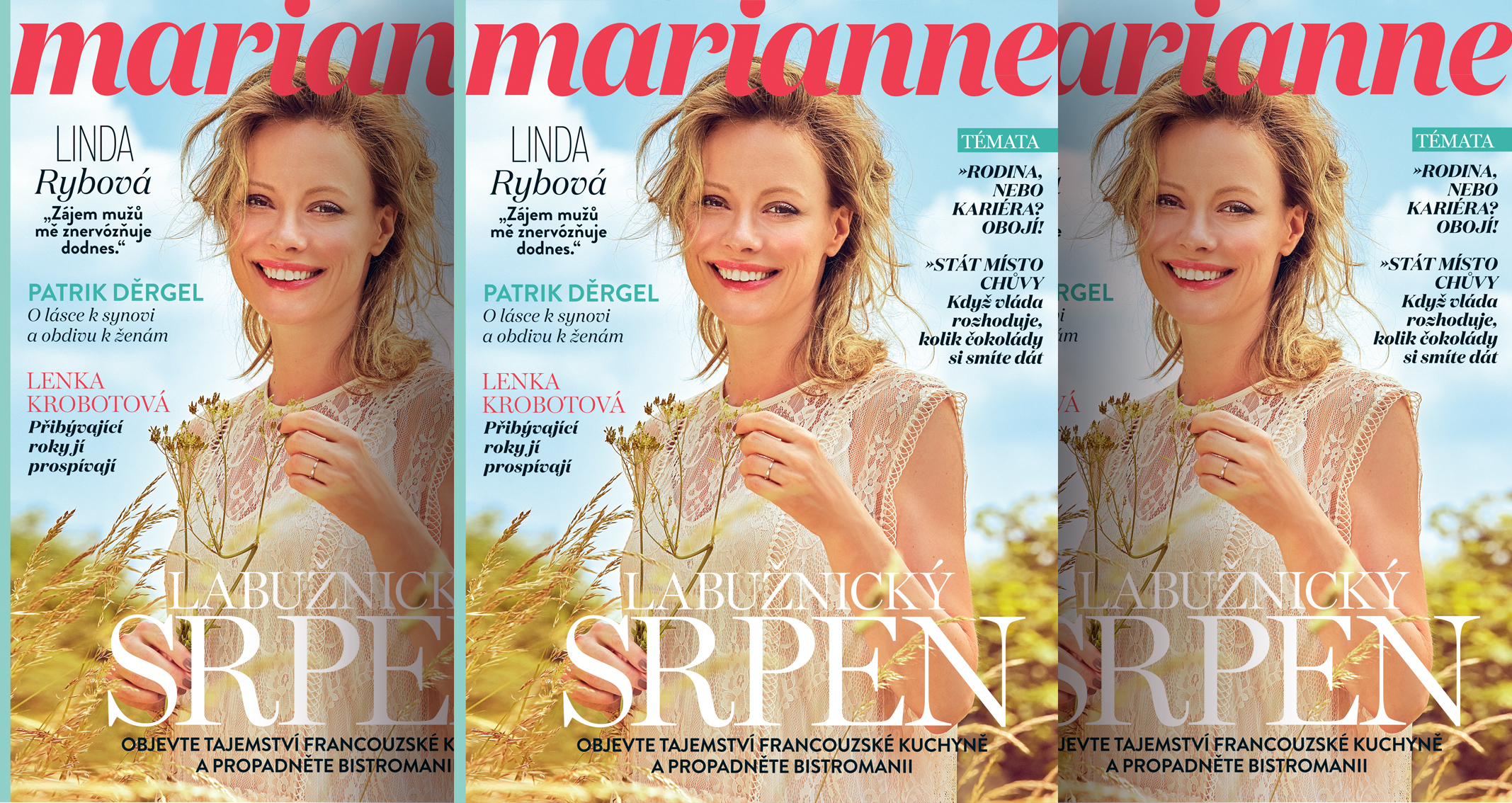 Společnost při letním odpočinku vám bude dělat Linda Rybová, Lenka Krobotová a Patrik Děrgel, kteří nám poskytli zajímavé rozhovory. Také se můžete těšit na trochu netradiční pojetí módy. V srpnovém čísle se totiž rolí modelek zhostily nejlepší české beachvolejbalistky Markéta Nausch Sluková a Barbora Hermannová.