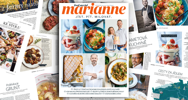 Můžete se těšit na rozhovory s velikány české gastronomie jako jsou Roman Paulus, Zdeněk Pohlreich, Radek Kašpárek, dozvíte se, kde tito profíci nakupují a také se můžete inspirovat naší přehlednou mapou, kam vyrazit za krajovými specialitami. A navíc se dozvíte, jak probíhal kurz vaření, který absolvovala celá redakce Marianne. Prozdradíme, že se to neobešlo bez zranění!
