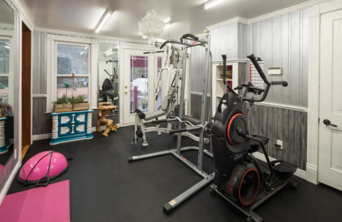 Ačkoliv panenka Barbie dostala křivky a perfektní postavu do vínku, my ostatní musíme pěkně makat, abychom měly pevné boky a hezký zadeček. I na to majitelka domu myslela, a tak v něm naleznete vlastní fitness plné posilovacích strojů. Po pořádném cvičení si následně můžete dopřát relax ve formě vířivky.