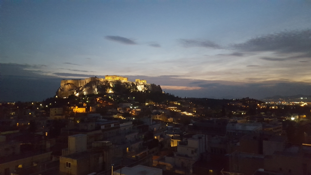 Pokud jste v Athénách, tak si dovolte to potěšení a ubytujte se v hotelu se střešní terasou, odkud budete mít výhled na Akropoli. Každý večer totiž můžete sledovat postupné rozsvěcování všech chrámů. První světýlko se objeví v Pantheonu a postupně pak přibývají všechny chrámy, až svítí celá Akropole. Tato fantastická show je z dílny stejného architekta, který rozsvítil Eiffelovku. Námi vybraný Electra Metropolis Hotel měl fantastickou střešní terasu. Pokud nechcete utrácet za ubytování v centru, tak si alespoň před rozsvěcováním chrámů zajděte do některého z těchto hotelů na večerní aperitiv.