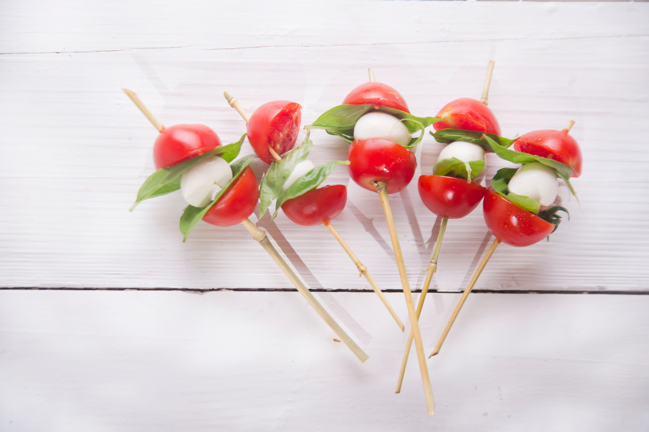 Mozzarella s rajčaty je velice oblíbená kombinace. Podle tohoto receptu je můžete podávat jako jednohubky. Jediné, co k tomu navíc budete potřebovat jsou špejle nebo párátka. Záleží, jak chcete mít špízy velké.