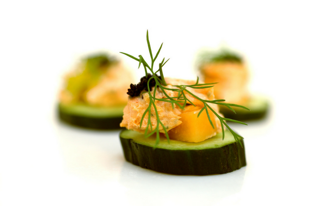 Okurkové kanapky s uzeným lososem a sýrovou pěnou