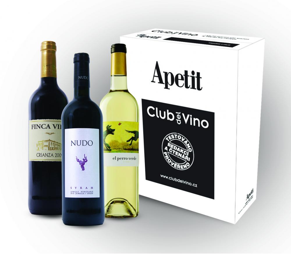 Vyzkoušejte degustační balíčky se třemi lahvemi vína, které jsme pro vás pomáhali vybrat v rámci našeho nového projektu Apetit Club del Vino. Ve speciálním kartonu Apetit Club del Vino vám pravidelně dorazí domů tři vynikající vína z Nového a Starého světa za výhodnou cenu.