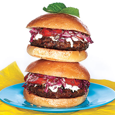 V míse prohněteme 500 g mletého jehněčího masa, hrst nasekaných mátových lístků, 2 drcené stroužky česneku, 1 žloutek, mořskou sůl a čerstvě mletý pepř. Ze směsi vytvarujeme 4 karbanátky, potřeme je olivovým olejem a grilujeme 4 minuty z každé strany.