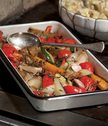 Po dvaceti minutách pečení alobal stáhněte, a dopékejte dalších dvacet až třicet minut. Zeleninu jezte horkou buď samostatně jako lehký oběd nebo večeři, nebo podávejte jako přílohu k masu.