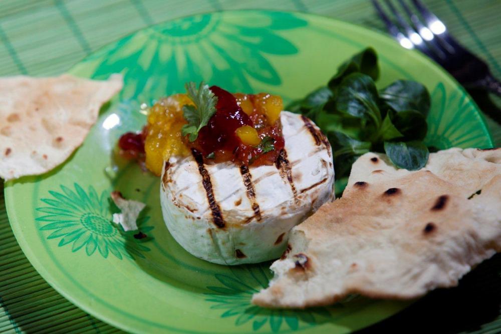 Grilovaný hermelín s mangovobrusinkovým čatní