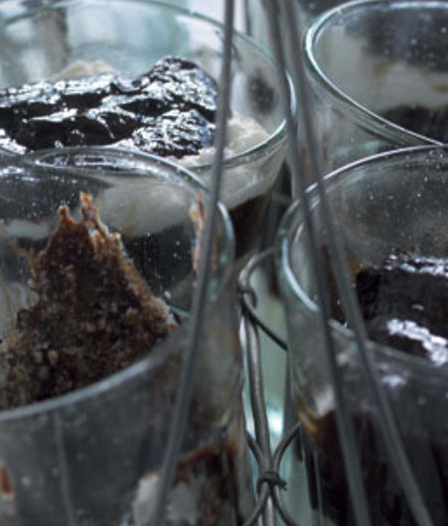 Promíchejte nebo vrstvěte spolu jemný tvaroh, žervé nebo lučinu a rozpuštěnou čokoládu. Přidejte trochu kondenzovaného mléka, až bude konzistence podle vašich představ.