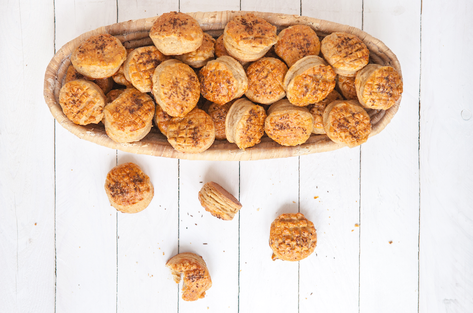 Z takhle připraveného těsta vykrajujte malé pagáče, které položte na plech a nechte ješte asi 30 minut dokynout. Nakynuté pagáče potřete vejcem a posypte kmínem nebo sezamovými semínky.