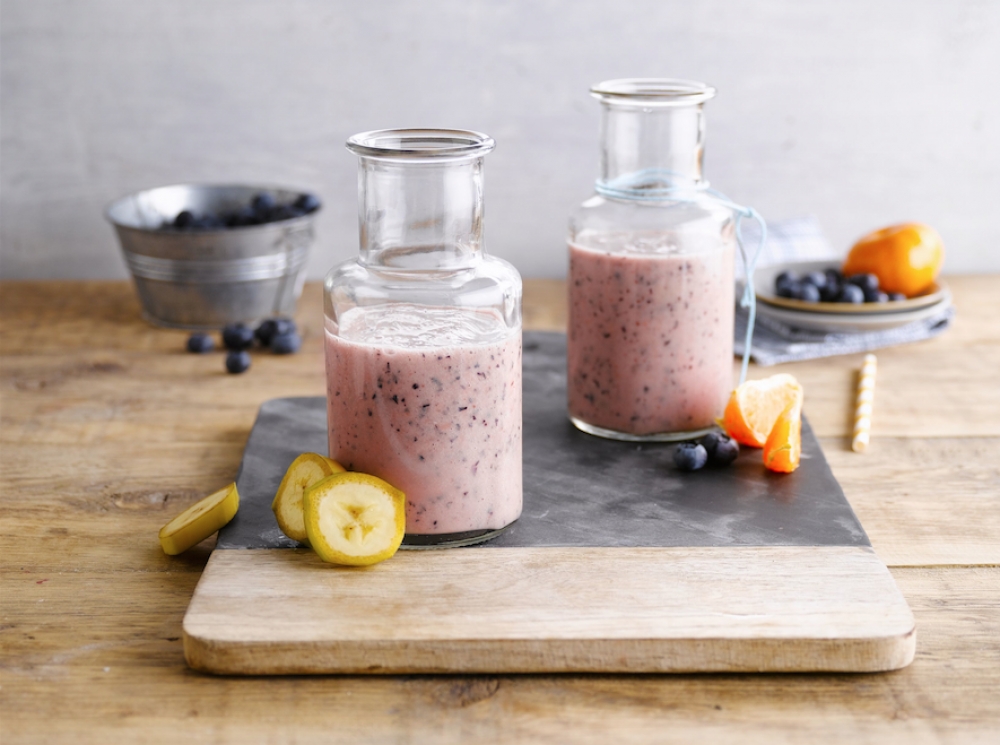 Mandarinku a banán oloupejte, banán nakrájejte na kousky. Ovoce vložíte do mixéru, přilijte neslazený mandlový nápoj a rozmixujeme dohladka.