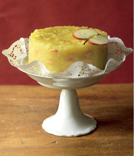 Dále si rozmíchejte pudinkový prášek ve 400 ml studené vody a vlijte do jablečné směsi. Přiveďte k varu a za stálého míchání vařte 2 minuty. Dortovou formu vypláchněte studenou vodou, vyložte vrstvou piškotů, zalijte třetinou jablečné směsi a stejně vytvořte další dvě vrstvy. Nechte ztuhnout a pak opatrně vyklopte. Podávejte s čerstvě ušlehanou smetanou.