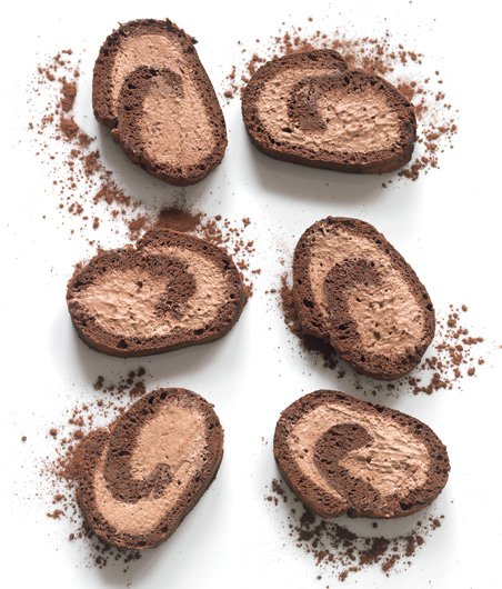 Vychladlé těsto rozbalte, potřete vychladlým krémem, stočte, zabalte do utěrky a nechte alespoň dvě hodiny v chladu. Před podáváním hojně poprašte kakaem. Krájejte na řezy.