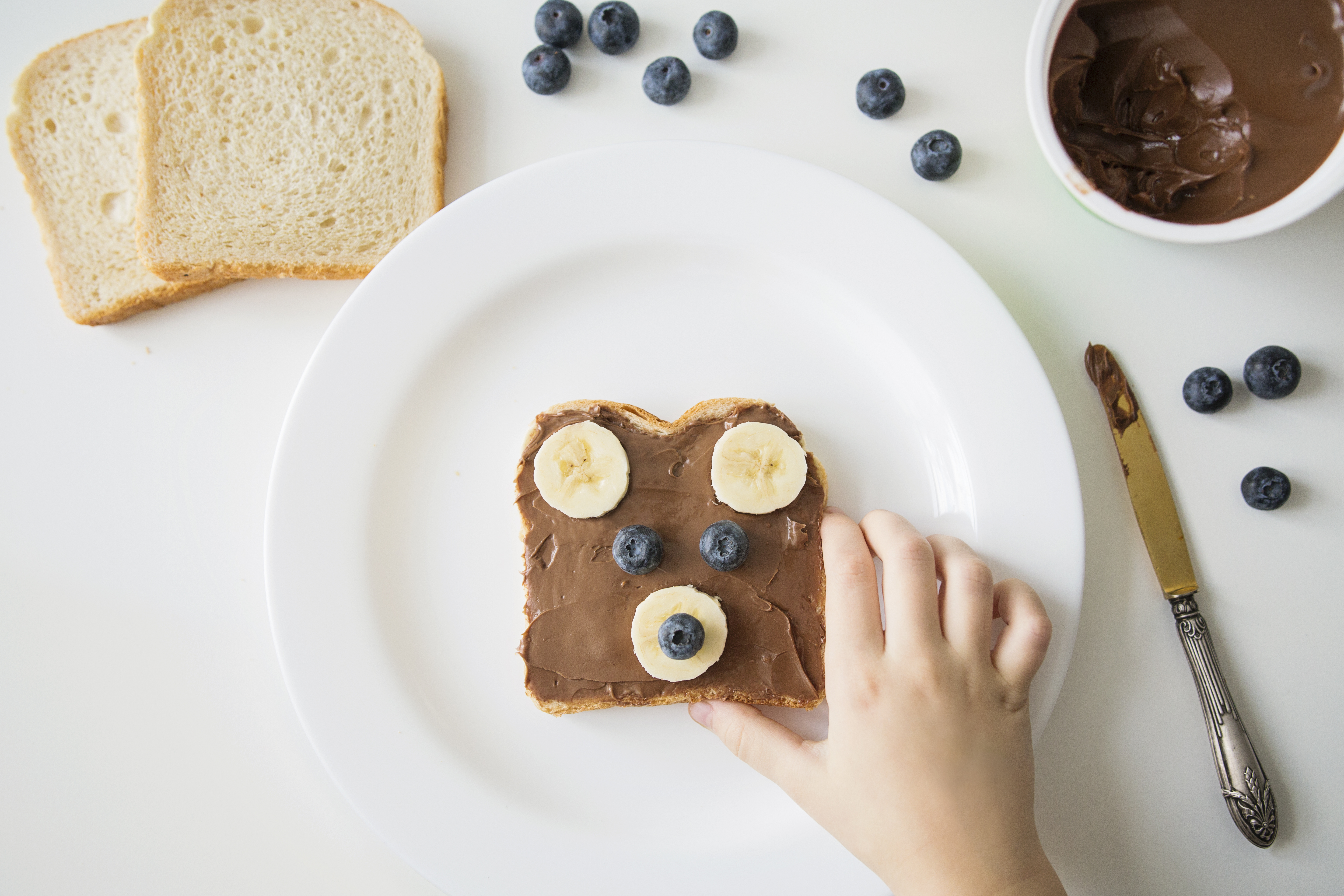 Na talíři můžete vytvořit třeba celou zoo. Budete k tomu potřebovat toastový chleba, jahody, banán, maliny, borůvky, arašídové máslo, pomazánkové máslo nebo nutellu.