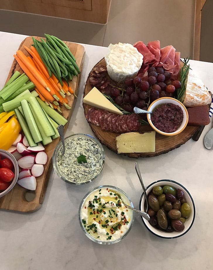 Celý den se snaží popíjet teplou vodu s citrónem, a když ji popadne hlad, připraví si zeleninu s humusem, sýry a uzeniny. Nelekněte se, tato porce není celá pro ni!