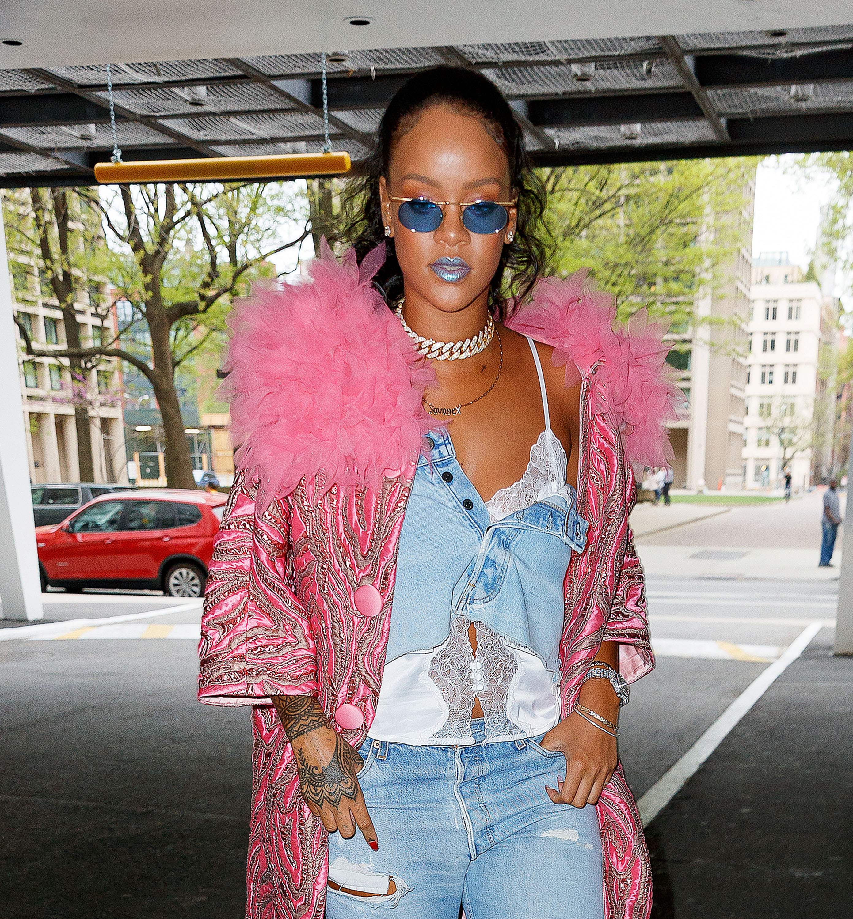 Rihanna je chameleon, kterému sedne snad úplně všechno a my jí to neskutečně závidíme! Nebojí se námořnicky modré ani více obávané tyrkysové... no, nám se víc líbí v tmavě modré variantě. Co vám?