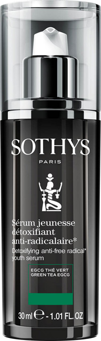 Sérum pro detoxikaci pleti - SÉRUM JEUNESSE DÉTOXIFIANT ANTI-RADICALAIRE je inspirováno detoxikačním ošetřením. Sérum se zářivou texturou se okamžitě vstřebá a optimalizuje buněčnou obnovu. Molekuly zeleného čaje EGCG se postupně uvolňují a působí proti volným radikálům a předčasnému stárnutí způsobeným každodenními mikrozáněty (tzv. jev inflamm´aging).