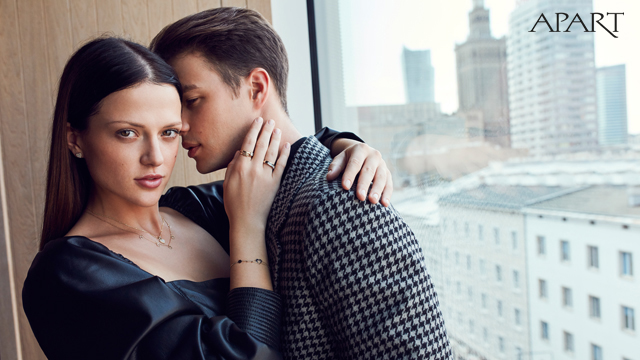 Něžný příběh lásky pro valentýnskou kampaň Apart ztvárnili hvězdy poslední řady Top Model Kinga Wawrzyniak a Stanisław Obolewicz. Autorem krásných fotografií je Marcin Tyszka, který zachytil mladý pár v městském prostředí Varšavy a také ve stylových interiérech. Snímky jsou plné přirozenosti, spontánní atmosféry i zamilovaných gest. Tento příběh o citech byl vytvořen, aby inspiroval zamilované k vlastnímu příběhu o lásce, kterou lze vyznat i beze slov, a to v jedinečné formě šperků Apart.