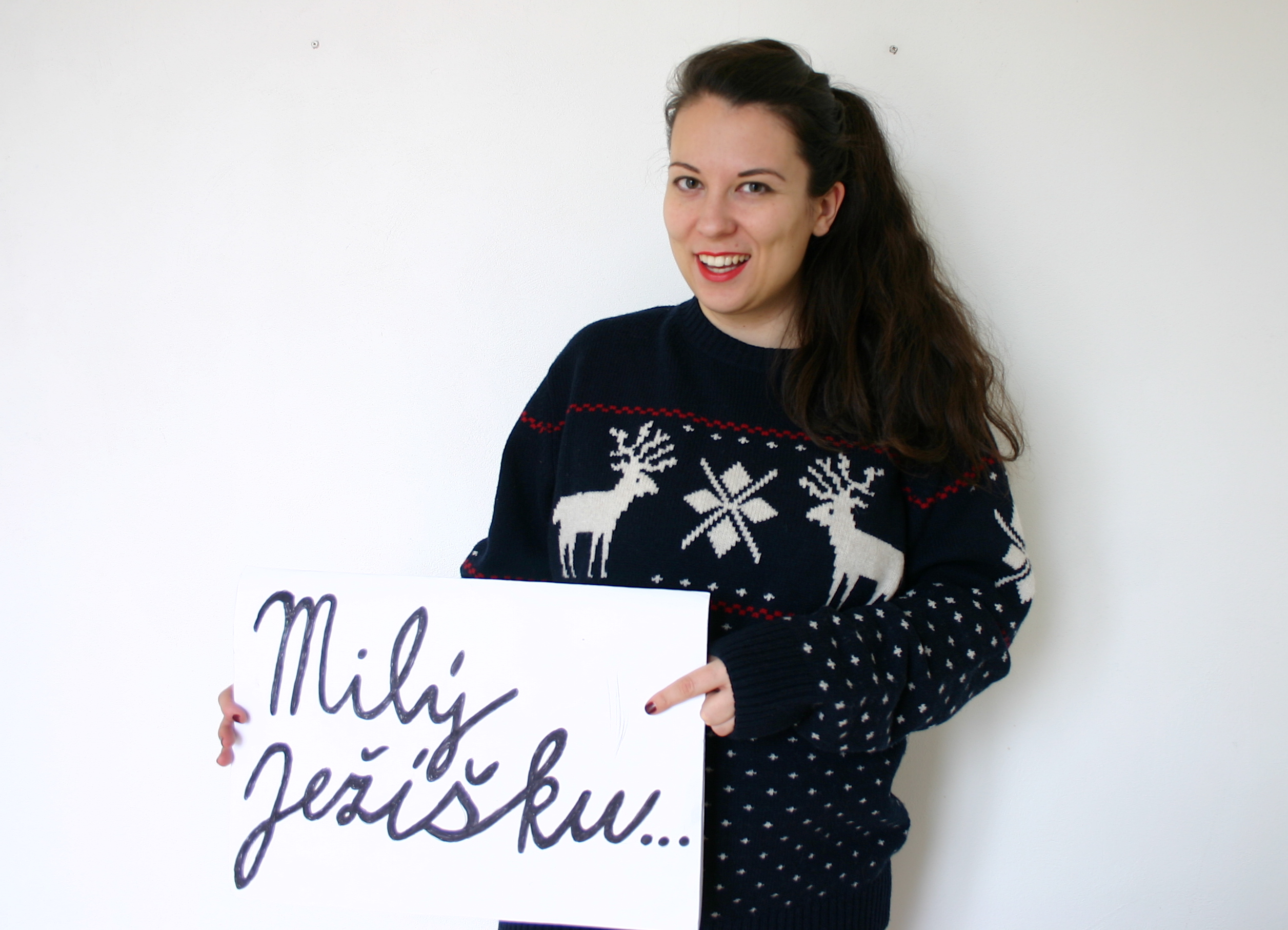 Ježíšku, prosím tě, nemysli si, že musím mít všechno z toho seznamu! Vyber, co uznáš za vhodné. Ze všeho nejvíc mi totiž jde o to, aby byla celá moje rodina šťastná a zdravá. Jo a taky chci světový mír, ten si napiš ještě před tu láhev na vodu. Děkuju!