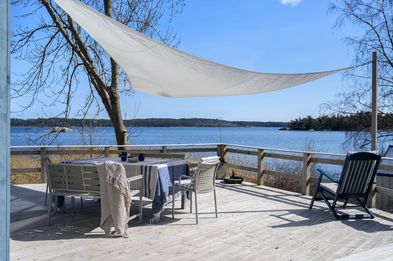 Do domu přijedete po úzké štěrkové silnici a už cestou zapomenete na všední starosti. Dlouhé molo vedoucí až modré hladině přímo vybízí k tomu, abyste se usadili na modré lavičce a pozorovali divokou přírodu. Interiér domu je zařízený jednoduše, protože když to počasí dovolí, majitelé tráví většinu času venku. Na přední terase orientované na jih je velký jídelní stůl s grilem a během letních měsíců je právě toto místo nejvyužívanější. V domě jsou všude nové lakované parkety, které jsou snadné na údržbu. O teplo se starají krbová kamna s krbovou vložkou. K domu patří také velká kůlna a dřevník, kde je uskladněné nářadí pro práci na zahradě. Kromě ovocných stromů a keřů, nechybí vyvýšené záhony a veliký skleník, který pomáhá v drsnějších severských podmínkách dozrát i citlivějším odrůdám.