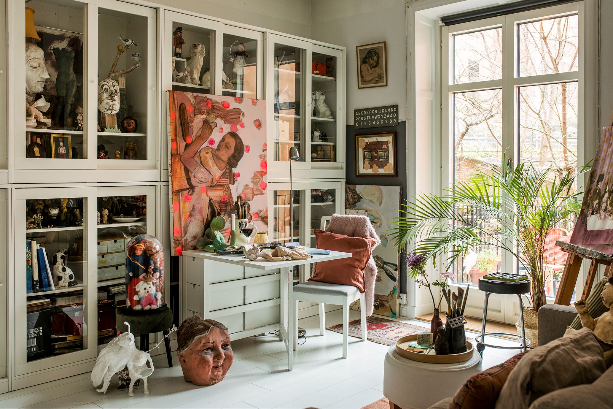 Obytnou plochu má sice pouhých 33 metrů čtverečních, přitom vypráví tisíce příběhů. Interiér tohoto stockholmského bytu je využitý do posledního milimetru, především proto, že jeho majitelka potřebovala, aby jí sloužil také jako malířský ateliér. Dispozice jsou na dnešní poměry poněkud netypické. Kuchyň zůstala oddělená, hlavní obytná místnost v sobě spojuje ložnici, obývací pokoj i ateliér. Úložné prostory jsou jak ve vstupní chodbě, tak v samostatné komoře, nedávné rekonstrukce se dočkala také menší koupelna. K bytu patří také sklad v suterénu, tak má majitelka kam uložit sezónní věci.