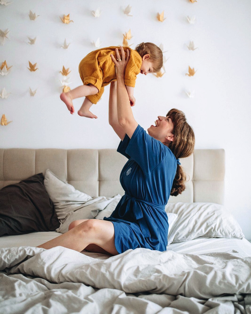 Byt byl teprve ve fázi projektu a manželé do něho mohli zasáhnout. Rozhodli se předělat uspořádání pokojů a upravit dispozici koupelny. Se stavební částí jim pomáhal kamarád, architekt Marek Bohunický. Jsou tu tři pokoje, dvě koupelny a obývák propojený s kuchyní a jídelnou. Velikou terasu za okny s výhledem do korun vzrostlých stromů používají po celý rok. „Mila zalévá kytičky a trhá ovoce z keříků, rádi tu grilujeme, posedíme s přáteli, občas se mi podaří cvičit tady jógu,“ říká Eva. O interiéru měla jasnou představu. „Líbí se mi severský styl, ale sám o sobě je na mě příliš monochromatický a studený. Zároveň miluju španělské interiéry, marocké a asijské vzory, zemitou barevnost a kvalitní přírodní materiály. Půjčila jsem si od všeho něco a ono to dohromady skvěle funguje! Mám ráda krásné věci a když zařizuju interiér, baví mě pomalu vnímat barvy i každý detail, nerada spěchám. Stejně to mám i v životě. Ten náš by se mohl někomu zdát možná moc obyčejný, ale pro nás má svoji neskutečnou krásu.“ Den rodina začíná, až se vzbudí Mila, což je mezi půl pátou a sedmou ráno. „Jen co otevře oči, zkontroluje obsah ledničky a borůvky na terase, pak usedneme k snídani. Když zrovna nepracuju, tak si hrajeme doma nebo jdeme do parku, za kamarády, cestou zpátky nakoupíme, když se přehoupne odpoledne, vaříme večeři a pořád si povídáme. Když jsme sami tři, jíme u barového pultu, máme-li společnost, prostřeme jídelní stůl. Večer s Jurajem uložíme Milu a pak svorně padneme na gauč, pustíme si nějaký dobrý film, u kterého já většinou blaženě usnu,“ směje se Eva. Manželé mají spoustu knih, jen část jich je v nástěnné knihovně v obýváku. Světelný řetěz v chodbě instaloval Juraj, jídelní stůl navrhla Eva a vyrobil ho umělecký řezbář. Nepřehlédnutelným prvkem jsou tu pokojovky, pozitivní atmosféru doplňují originální suvenýry z cest a obrazy od přátel. Retro komoda i zkumavky na ní pocházejí z bazaru, repasovaná kinokřesla ze zrušeného biografu. Fotka nad nimi je od fotografky Márie Švarbové. Všechny solitéry krásně vynikají a zároveň spolu příjemně ladí.