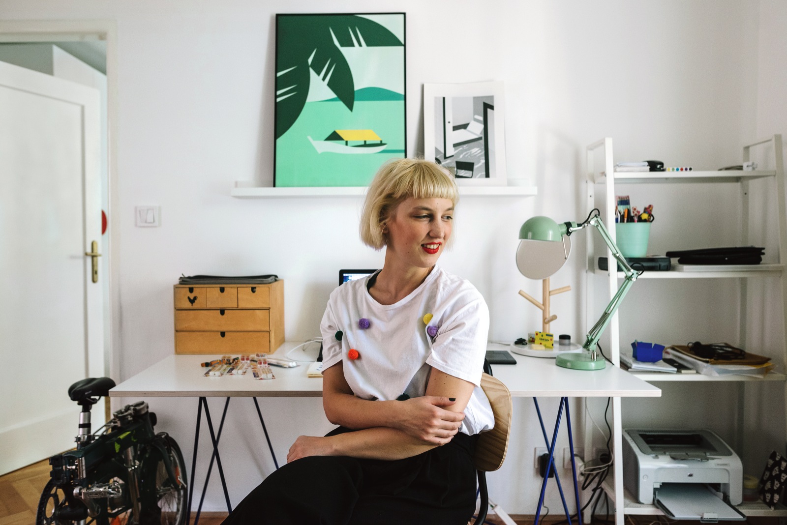 Padesát metrů čtverečních je pro někoho málo, pro grafickou designérku Michaelu Chmelíčkovou naopak víc než dost. Než se totiž před třemi lety nastěhovala do bratislavského 2+1, obývala v Londýně čtyřikrát menší garsonku. „V Anglii jsem vystřídala několik grafických studií a práce byla tak náročná, že jsem se do svého minibytu více méně chodila hlavně vyspat. Teď doma trávím mnohem víc času, i proto, že koutek v obýváku slouží jako moje ministudio, kde tvořím grafiku na zakázku,“ vypráví. Několik měsíců ale trvalo, než byt v cihlové zástavbě z 50. let přizpůsobila svým představám. S jejich naplněním jí pomohla architektka Soňa Pohlová ze studia Nice & Wise. „Konzultovaly jsme spolu každý krok, aby celek dával smysl. Za hodně povedenou považuji třeba bílou podlahu. Byt krásně prosvětlila,“ popisuje Michaela. Litý polyuretan je na zemi v kuchyni a koupelně, tedy v místnostech, které si výtvarnice pod vedením Soni nejvíc vymazlila. Kuchyňskou linku vyrobil truhlář na míru podle návrhu architektky.