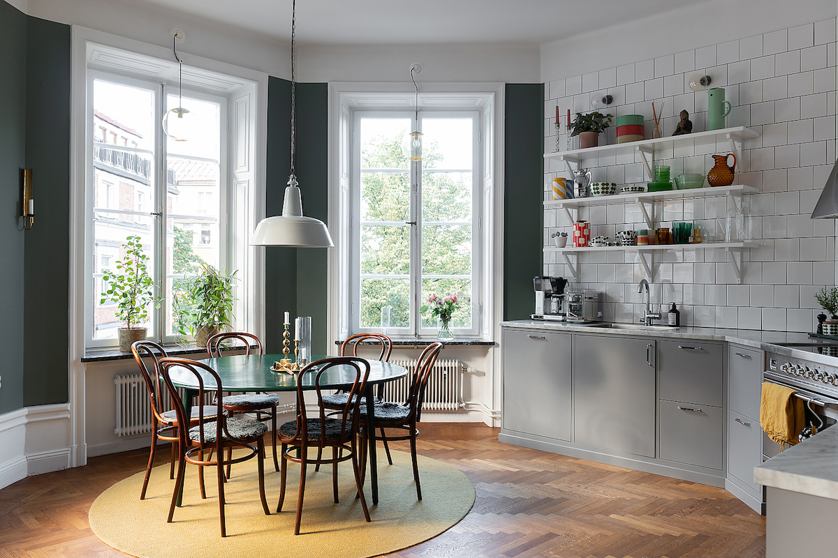 Prostorný secesní byt o ploše 111 m² je domovem čtyřčlenné rodiny. Dům, ve kterém společně žijí manželé a dvě děti, byl postavený už v roce 1881. Jeho secesní minulost je zřejmá ze stropních rozet, zrcadlových dveří a štukovaných zdí. Veliká okna s fantastickým výhledem, která byt celý den koupají v denním světle, byla instalovaná ve 30. letech minulého století. V důsledku rozsáhlého požáru na konci 20. let byl celý dům zrekonstruován ve směsi stylů raného funkcionalismu a art deca. Skvělé dispozice dělají z bytu ideální místo pro život. Ve společné části bytu najdeme kuchyň s jídelnou, která je jakýmsi srdcem bytu, obývací pokoj a místnost, která slouží jako knihovna. V levé části bytu jsou dva dětské pokoje s úložnými prostory, v pravé části je pak ložnice. Každý člen rodiny má tak dostatek soukromí a také úložného místa.