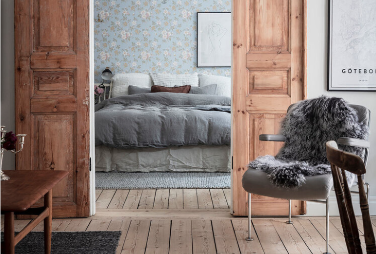 Tento byt ve staré zástavbě švédského Stockholmu najdeme ve zrekonstruovaném secesním domě postaveném před více než sto lety. Najdeme zde hned několik prvků odkazující na historii domu. Je zde původní dřevěná podlaha, kterou stačilo pouze obrousit. Repasované jsou také dvoukřídlé dveře oddělující ložnici od obývacího pokoje. Jsou zde původní secesní lustry i zrcadla, stejně tak koupelna byla velmi citlivě zrekonstruovaná a zachovává si atmosféru 19. století.