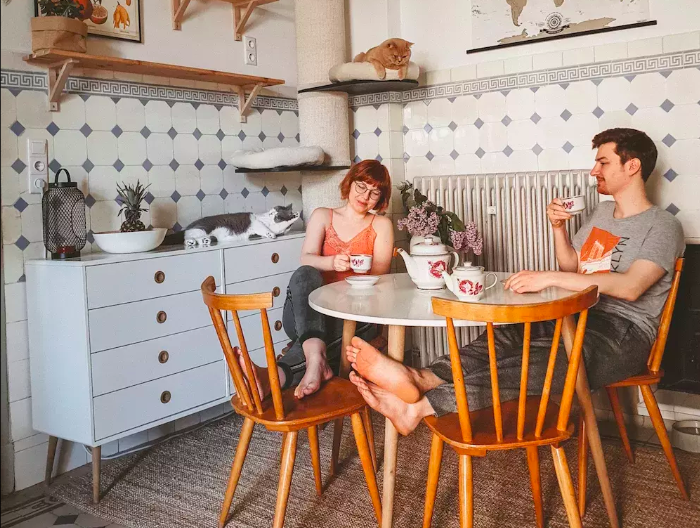 Katharina s Romanem, kocouři Teddy a Jimmy, spousta rostlin a poklady z blešáků. To jsou naši dnešní hostitelé v jednom stylovém bytě v německém Norimberku.
