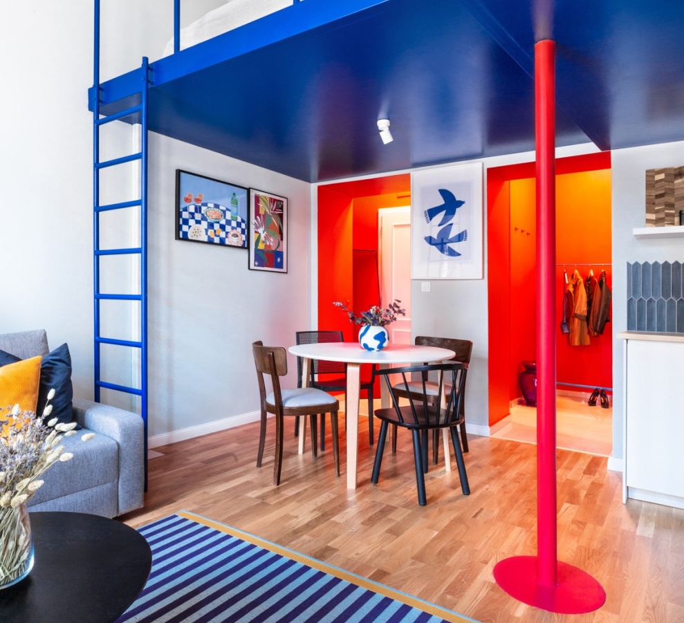 Nájemní byt prošel fantasickou proměnou: Výrazné syté barvy v duchu české trikolóry se staly hlavním prvkem interiéru v centru Prahy