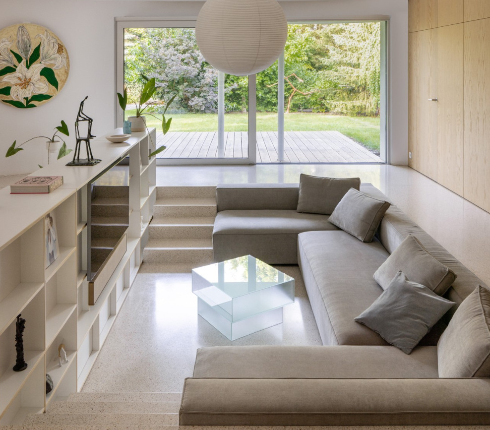 V současné době velké poptávky a malé nabídce s nemovitostmi, lidé hledají v centru Bratislavy alternativní formy bydlení. Zadání pro tento projekt vzniklo z potřeby využít k bydlení nepoužívané bazénové haly v rodinném domě, a vytvořit tak další bytovou jednotku, která umí fungovat samostatně v rámci domu, přesto zůstává propojena i s původním bytem na podlaží. Vzniká tak vícegenerační bydlení mladého páru s rodiči, s dostatkem soukromí, a zároveň výhodou vzájemné blízkosti. „Prostor měl problematickou orientaci a nedostatečné prosvětlení, které jsme částečně vyřešili výřezem nových okenních konstrukcí tak, aby poskytly dostatek světla a zároveň propojení se zahradou. Prostor jsme předělili nábytkovou jasanovou stěnou, která oddělila ložnice se schodištěm a vytvořila tak rozměrově racionální noční zónu. Ložnice jsou orientovány na východ, tak aby měly dostatek ranního slunce,“ vysvětlují autoři projektu Andrej Olah, Filip Marčák, Matej Kurajda ze studia Grau Architects.