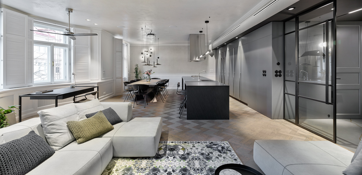 Spojením dvou bytů vznikl dokonalý domov, který je nadčasově elegantní